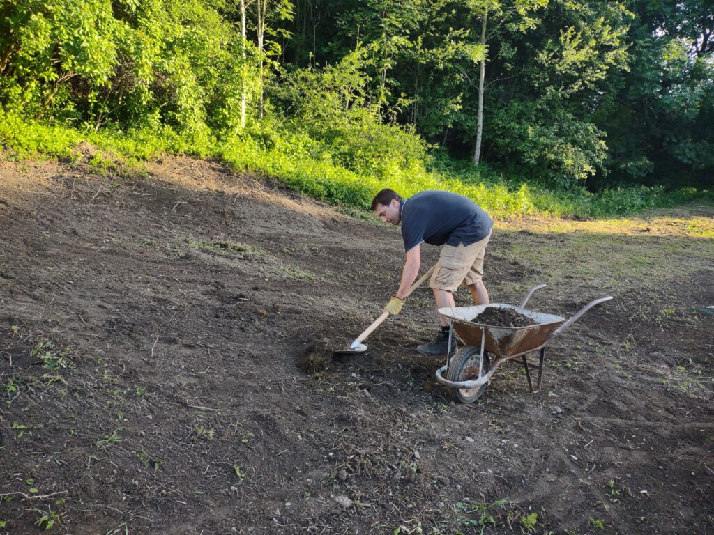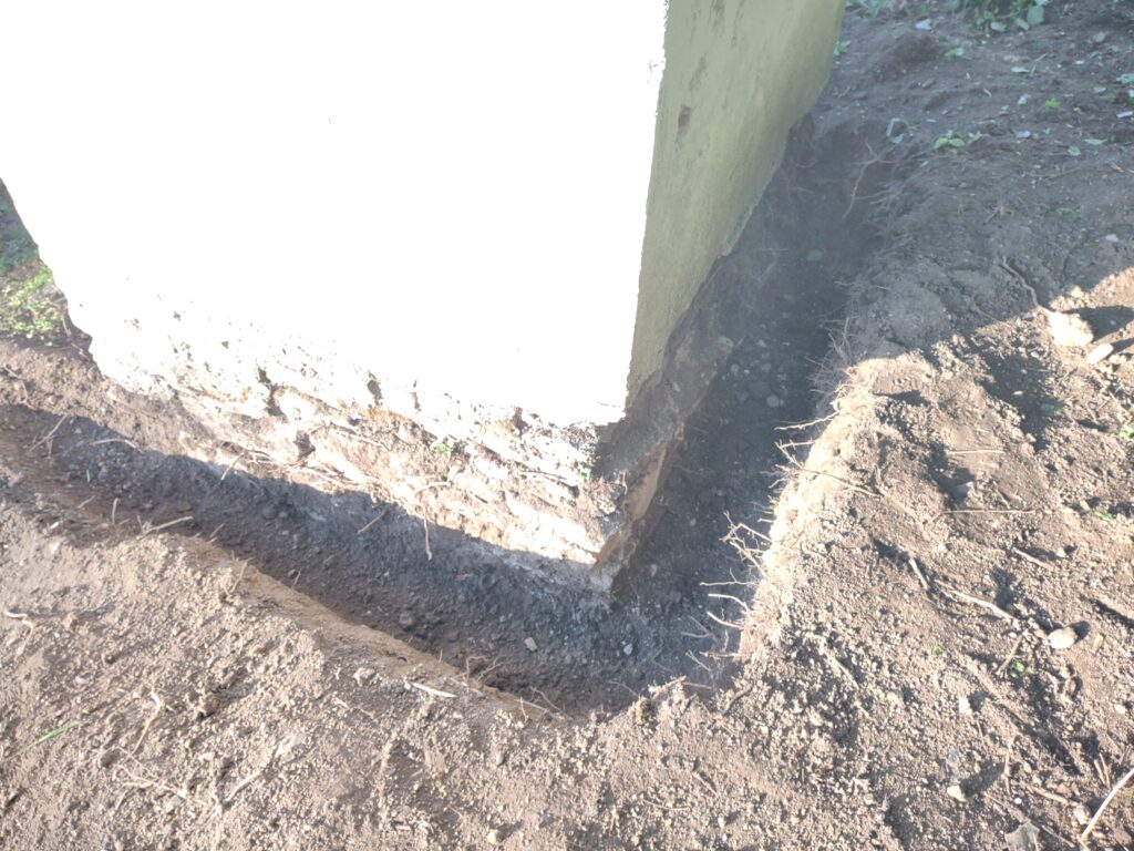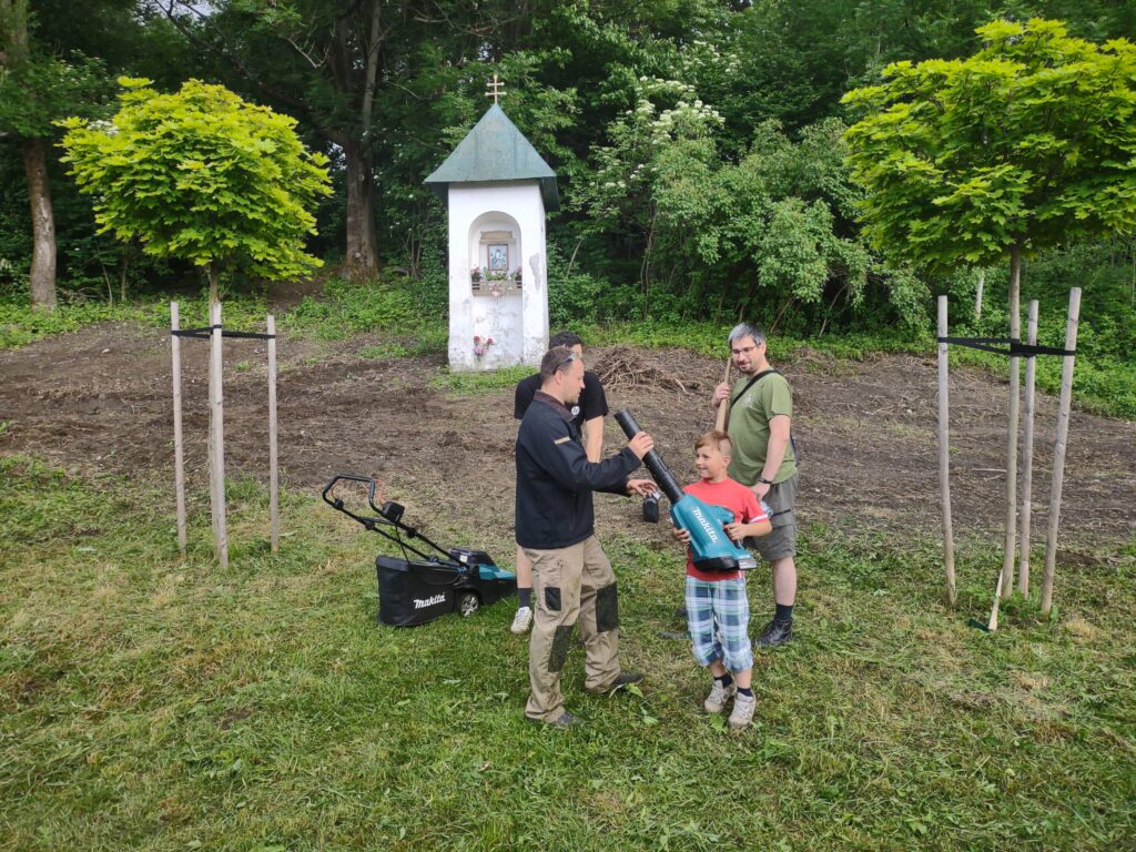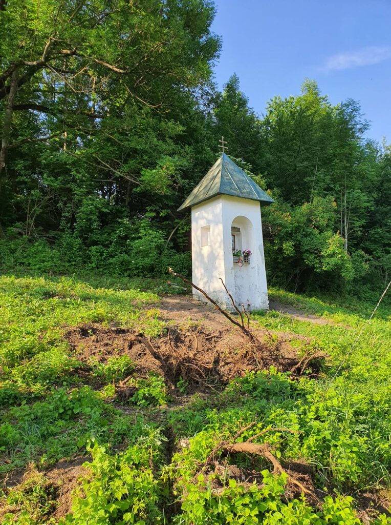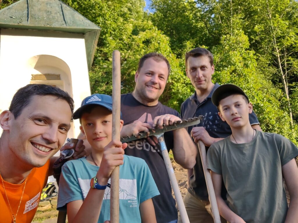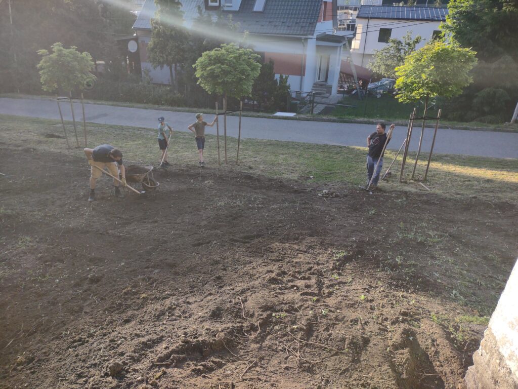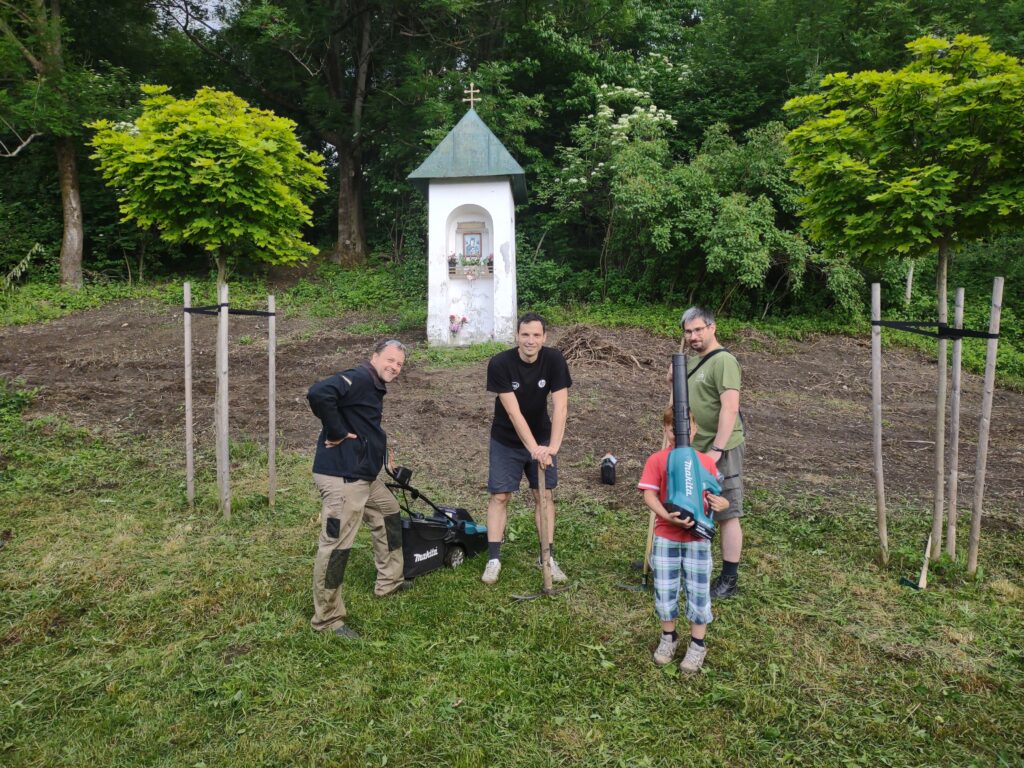 Takto to vyzeralo na začiatku, keď sme vyčistili od koreňov, kameňov, množstva skla, plechoviek a ďalšieho odpadu a náletových drevín. Zároveň sme vykopali drenážny výkop okolo Božej muky, ktorú sa chystáme odizolovať.