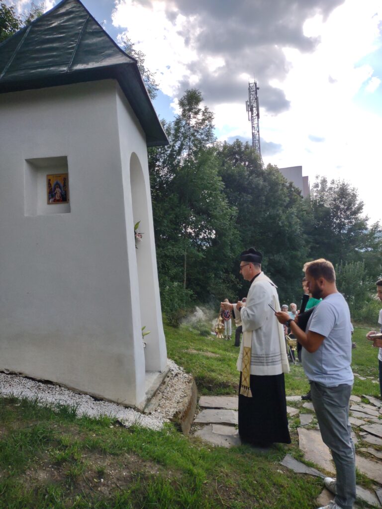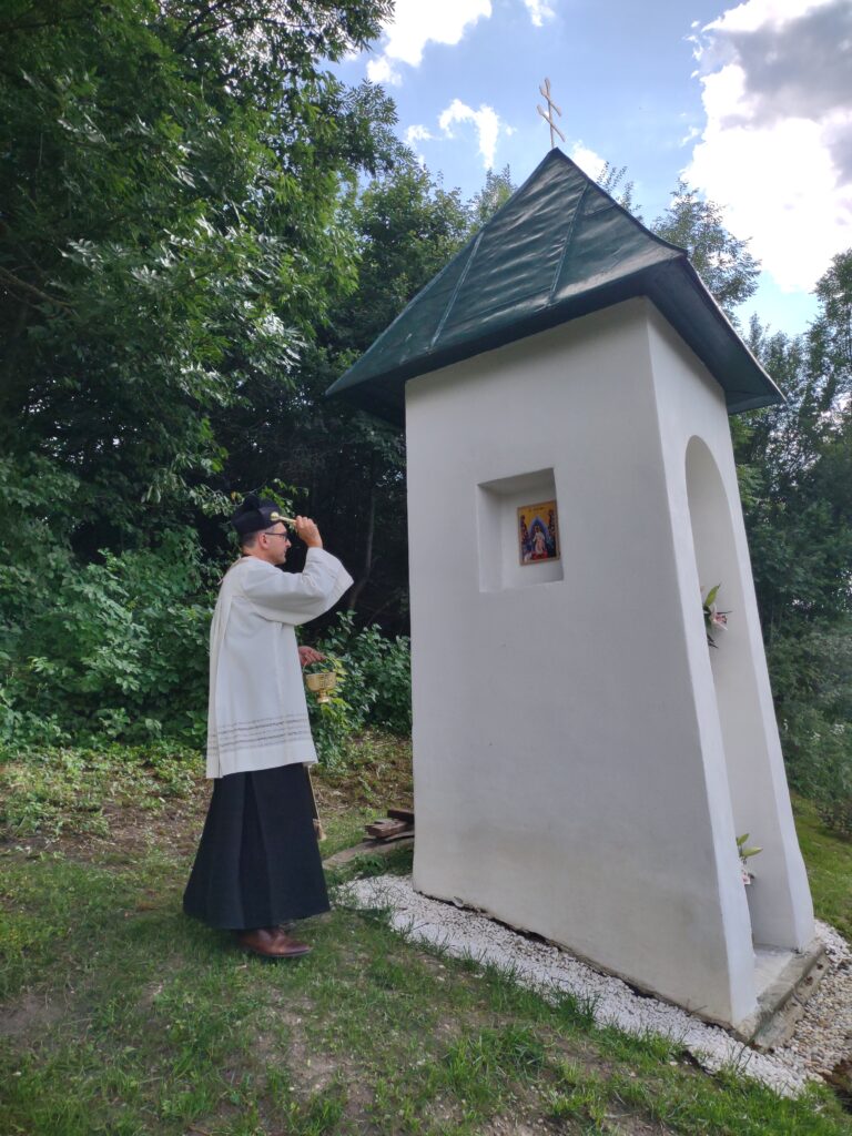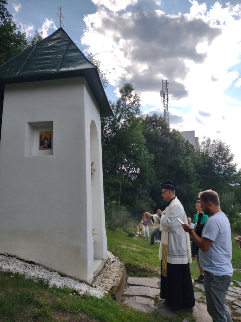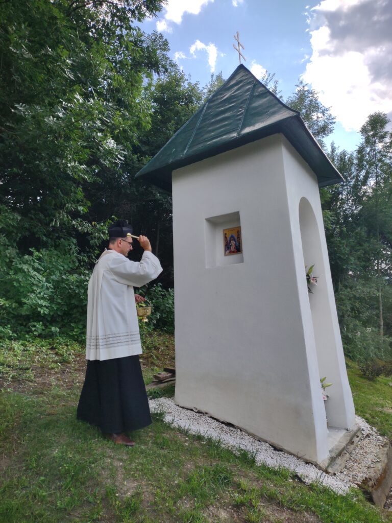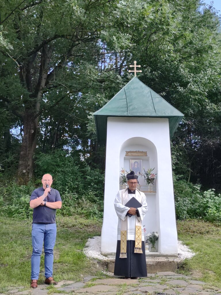- 8. Nad rámec projektu sme prostredníctvom sponzora – Liptovskej stavebnej spoločnosti – opravili kaplnku (Božia muka), ktorá je v mieste pripravovanej oázy. (Vykopali sme odvodnenie, zoškrábali starú omietku a farby na streche, realizovali nový náter + nová omietku, kamenivo okolo kaplnky.