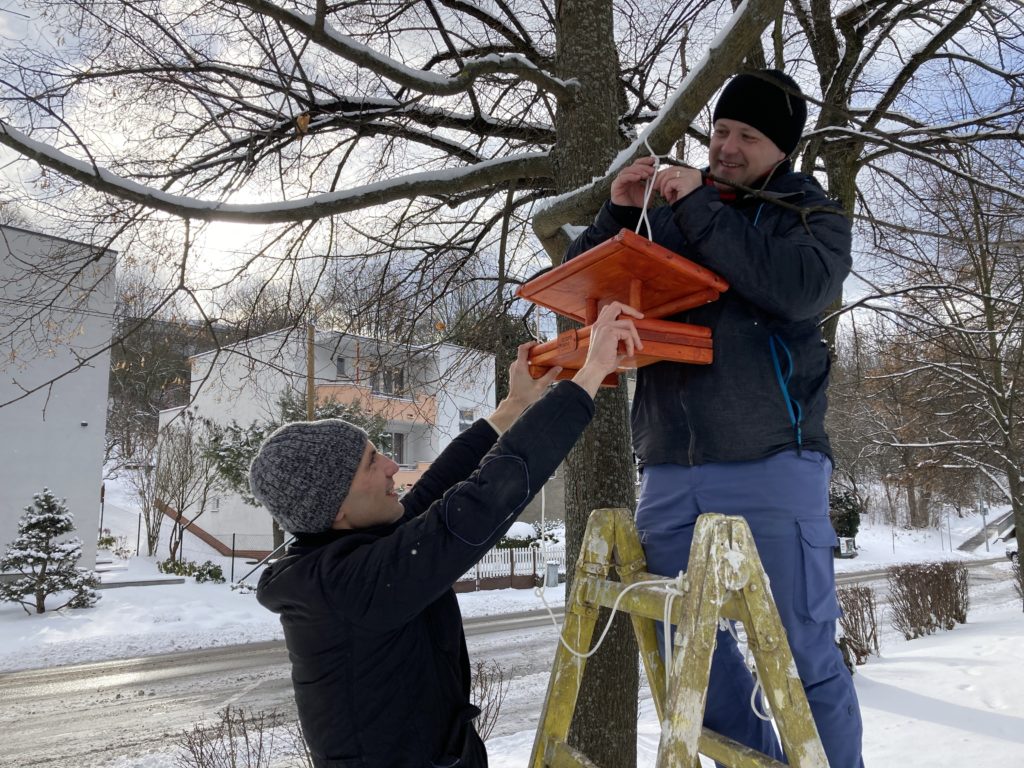 Koncom januára sme vyrobili a po meste rozvešali desať vtáčích kŕmidiel.