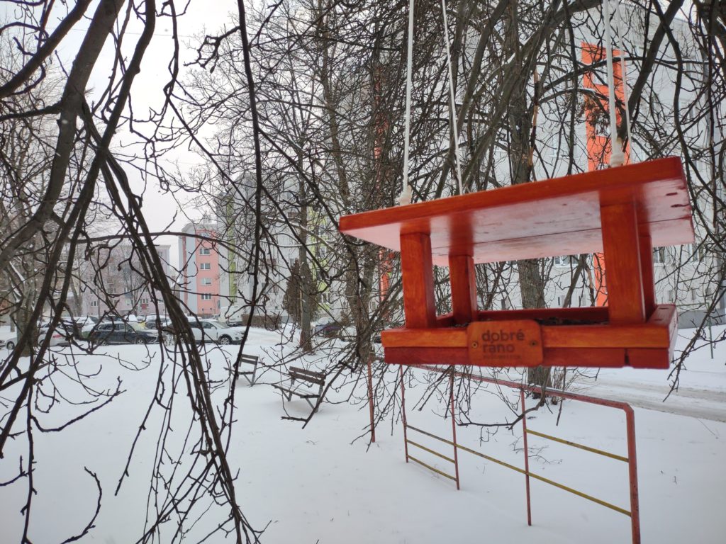 Kŕmidlá s logom nášho občianskeho združenia nájdete napríklad v Parku Š. N. Hýroša, na Mariánskom námestí, v Rybárpoli, Políku, Rovni či na Tatranskej ceste.